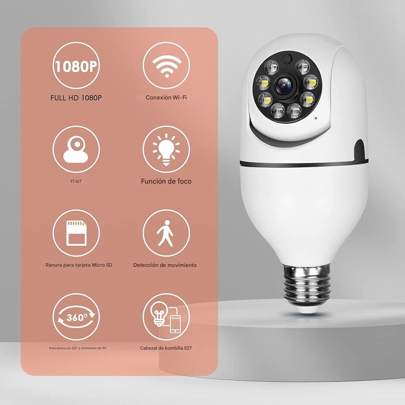 La Cámara con Bombillo es la solución perfecta para proteger tu espacio sin que se note. Con su cámara de alta resolución integrada en un bombillo LED, te ofrece seguridad y comodidad en un solo dispositivo.